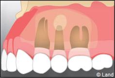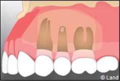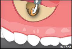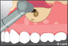 Il faut localiser le bout de la racine de la dent atteinte, procéder au décollement de la lésion avec une curette à bords tranchants, couper et enlever la partie de racine infectée.